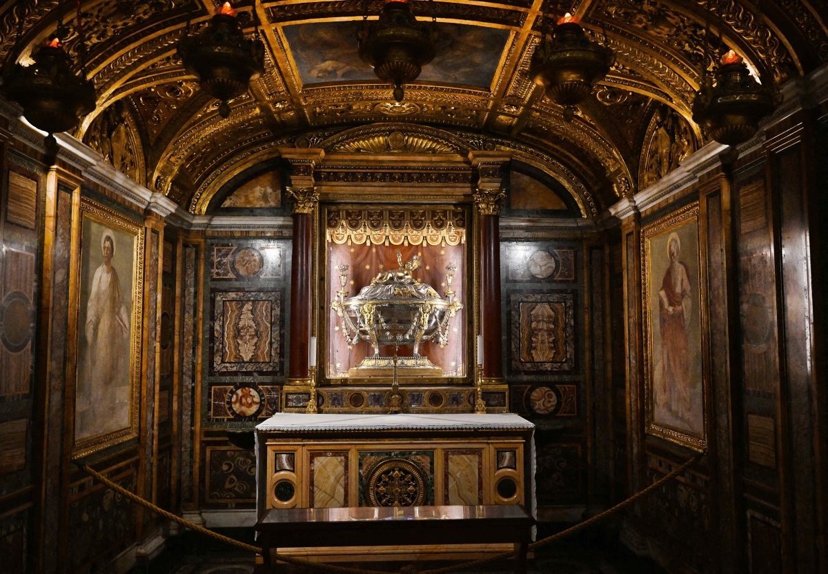 Các tín đồ tập trung tại nhà nguyện Pauline của Vương cung Thánh đường Đức Bà Cả hôm 21/4, sau khi Tòa Thánh Vatican thông báo Giáo hoàng Francis đã qua đời.